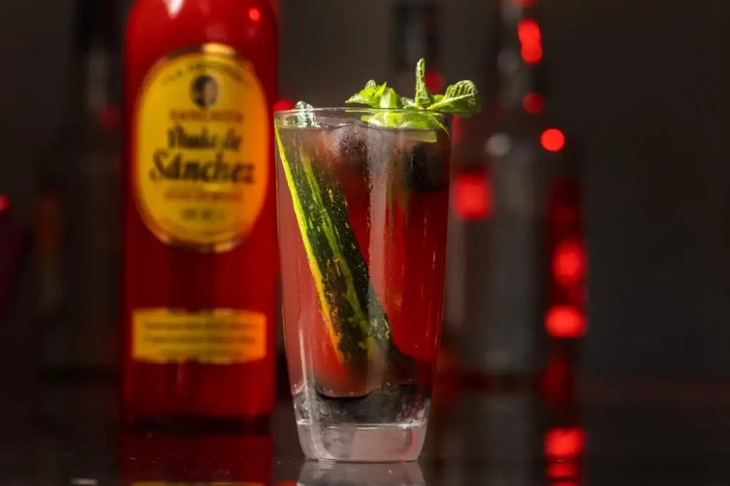 Combine ingredients: In a cocktail shaker filled with ice, combine the white rum, Sangrita, blueberry juice, and lime juice.